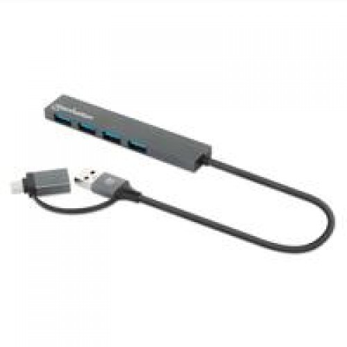HUB/MANHATTAN/181006/ HUB DE 4 PUERTOS USB-A 3.2 GEN 1 CON CONECTOR ADAPTABLE DE USB-A A USB-C, - Garantía: SG -
